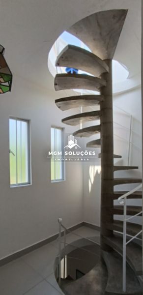 Escada caracol, fechamento com porta em alumínio